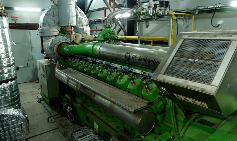 The installation combines high-efficiency gas engines (Jenbacher, MWM) with modern control systems to ensure reliable and flexible power output.